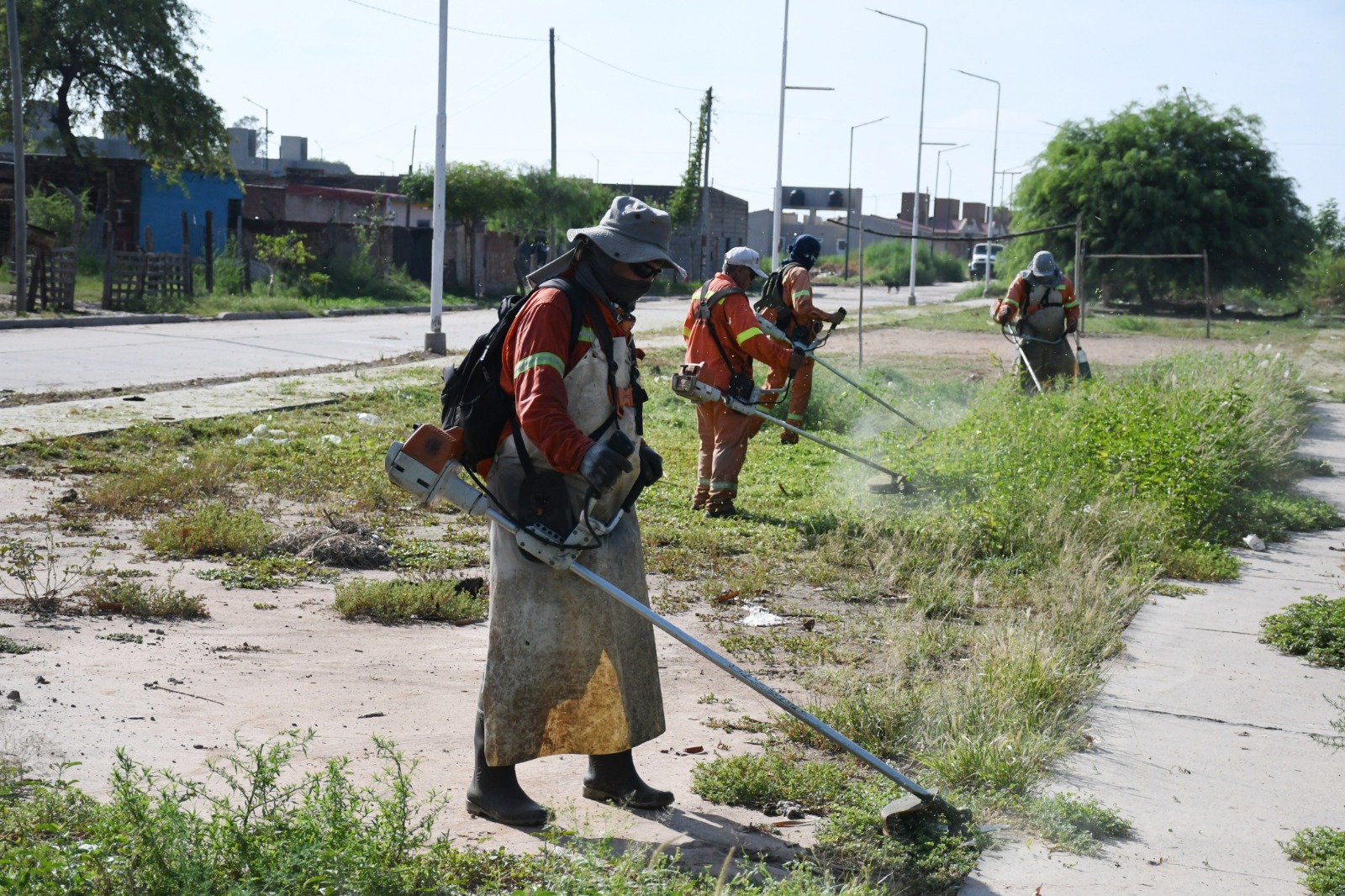 Una cuadrilla se encargó del desmalezamiento con la utilización de motoguadañas y otras herramientas, mientras otros operarios se ocuparon de retirar los restos de la vegetación y residuos domiciliarios que habían sido arrojados en la zona.