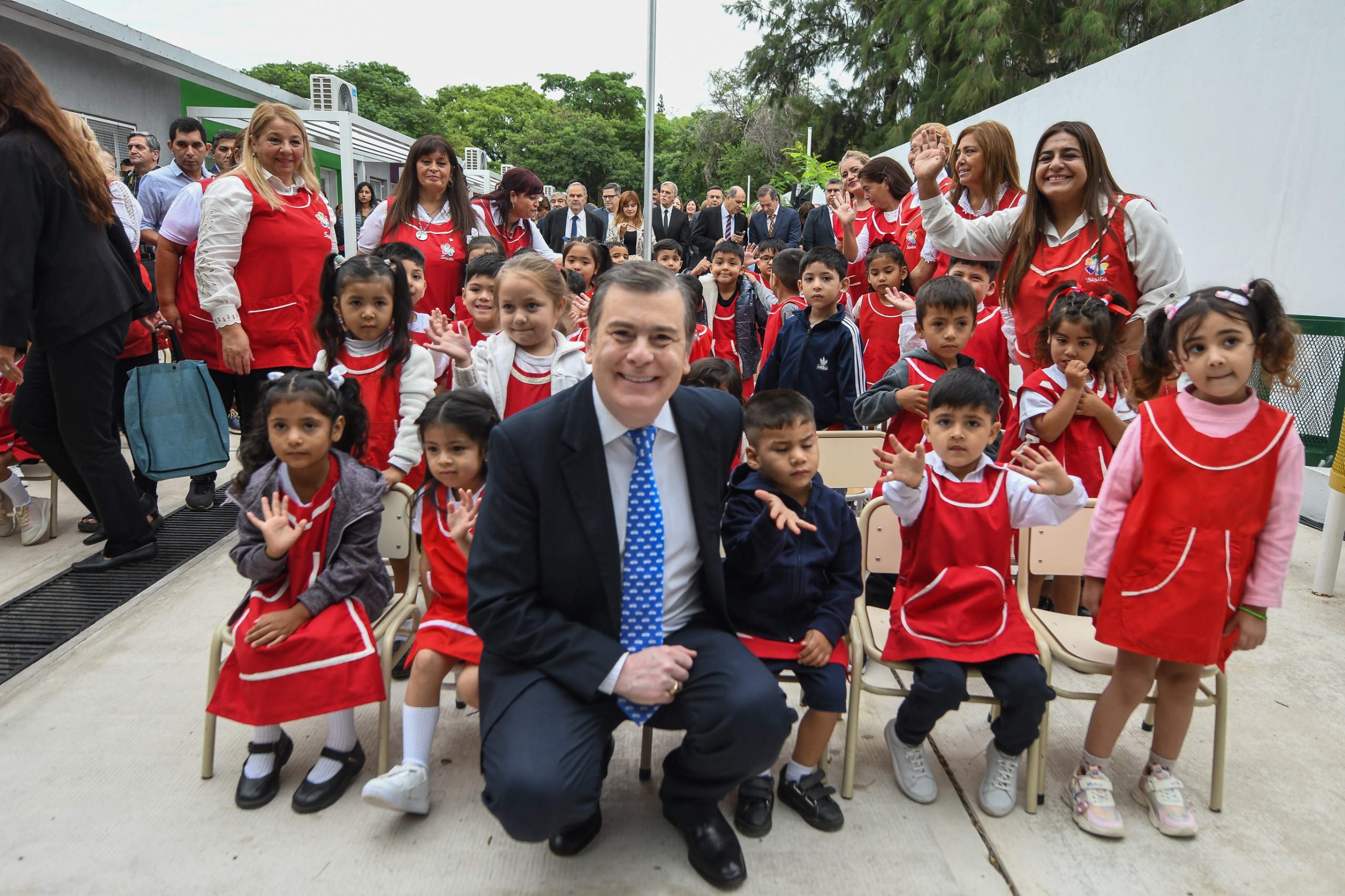 “Esto implica el máximo esfuerzo para que un jardín de infantes con 160 alumnos, como aquí en la ciudad Capital, o a veces en un jardín para 5 alumnos en algún paraje del interior provincial, tengan las mismas condiciones de infraestructura para llevar adelante un trabajo pedagógico con excelencia, que nuestros docentes con su vocación realizan, y eso implica también el equipamiento, el acceso a internet, etcétera”, agregó.