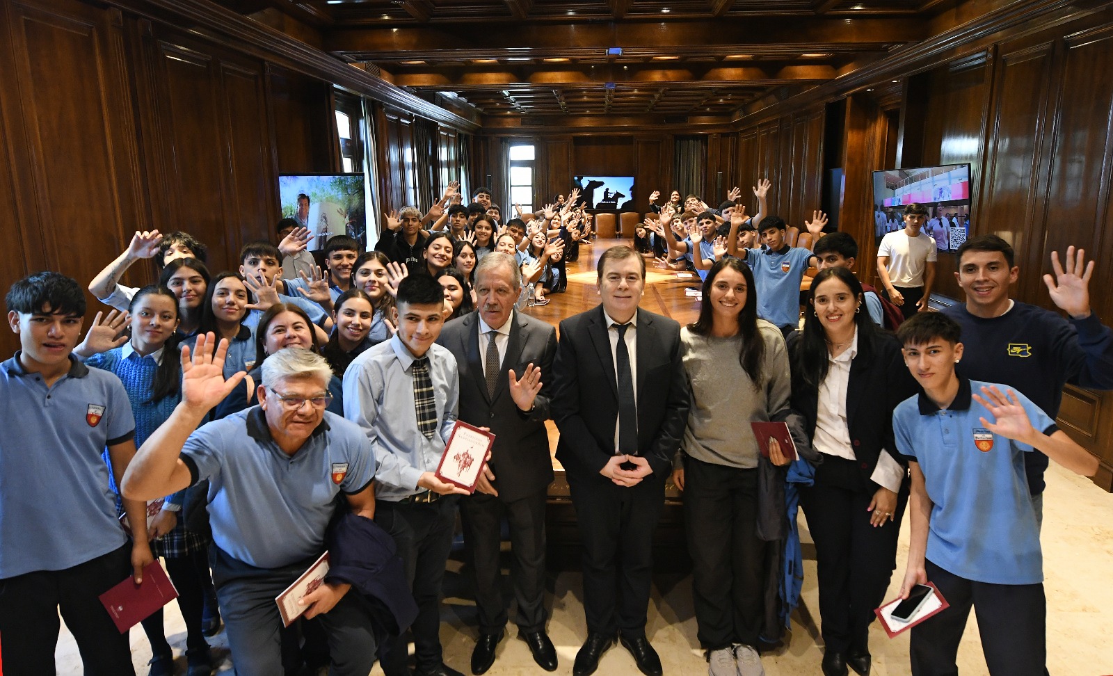 El mandatario, por su parte, expresó su satisfacción por poder recibirlos junto al Jefe de Gabinete en la sede del Poder Ejecutivo y agradeció a los docentes por acompañar a los estudiantes en este viaje que forma parte del programa “que tiene como objetivo que todos los jóvenes del último año de todo el territorio provincial puedan visitar los lugares históricos, culturales, deportivos, y sobre todo espacios institucionales que tiene nuestra provincia”.