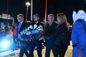 Durante la ceremonia, se realizó un minuto de silencio en memoria de los soldados caídos en combate, se entonaron el Himno Nacional Argentino y la Marcha de Malvinas, y se depositaron ofrendas florales.