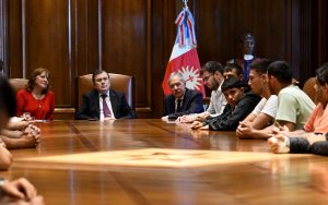 La delegación fue recibida en el Salón de Acuerdos, encabezada por la Directora general para el Abordaje Integral de las Adicciones, Claudia Tarchini; el presidente de la Fundación Nocka Munayki, Javier Manzano, y el Director del Crease, Mario Corbalán.