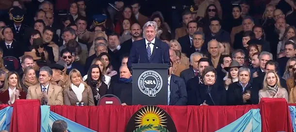 El presidente de la Sociedad Rural Argentina, Nicolás Pino, dijo que el sector agropecuario tiene muy claro “a qué lugar no queremos volver”, en alusión al kirchnerismo, lo que desató el primer aplauso de la gente en las gradas, mientras que volvió a pedir la eliminación de las retenciones y le apuntó a provincias y municipios por las altas cargas impositivas.