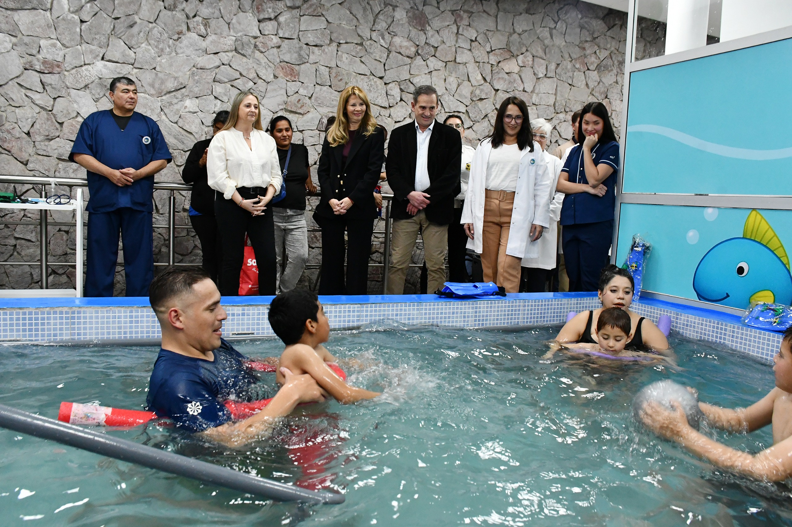 El Instituto Provincial de Rehabilitación Integral (IPRI) llevó adelante la refuncionalización de sus piletas destinadas a la hidroterapia de niños y adultos, en un acto que contó con la presencia de la Ministra de Justicia, Dra. Matilde O’Mill, el Secretario de Salud, Dr. Gustavo Sabalza, la Directora de Atención Médica, Dra. Stella Maris Argañaras, y la Directora del IPRI, Lic. Paula Mansilla. También participaron Directores del Minsiterio y de hospitales de la provincia junto a pacientes y equipo de salud de la institución.