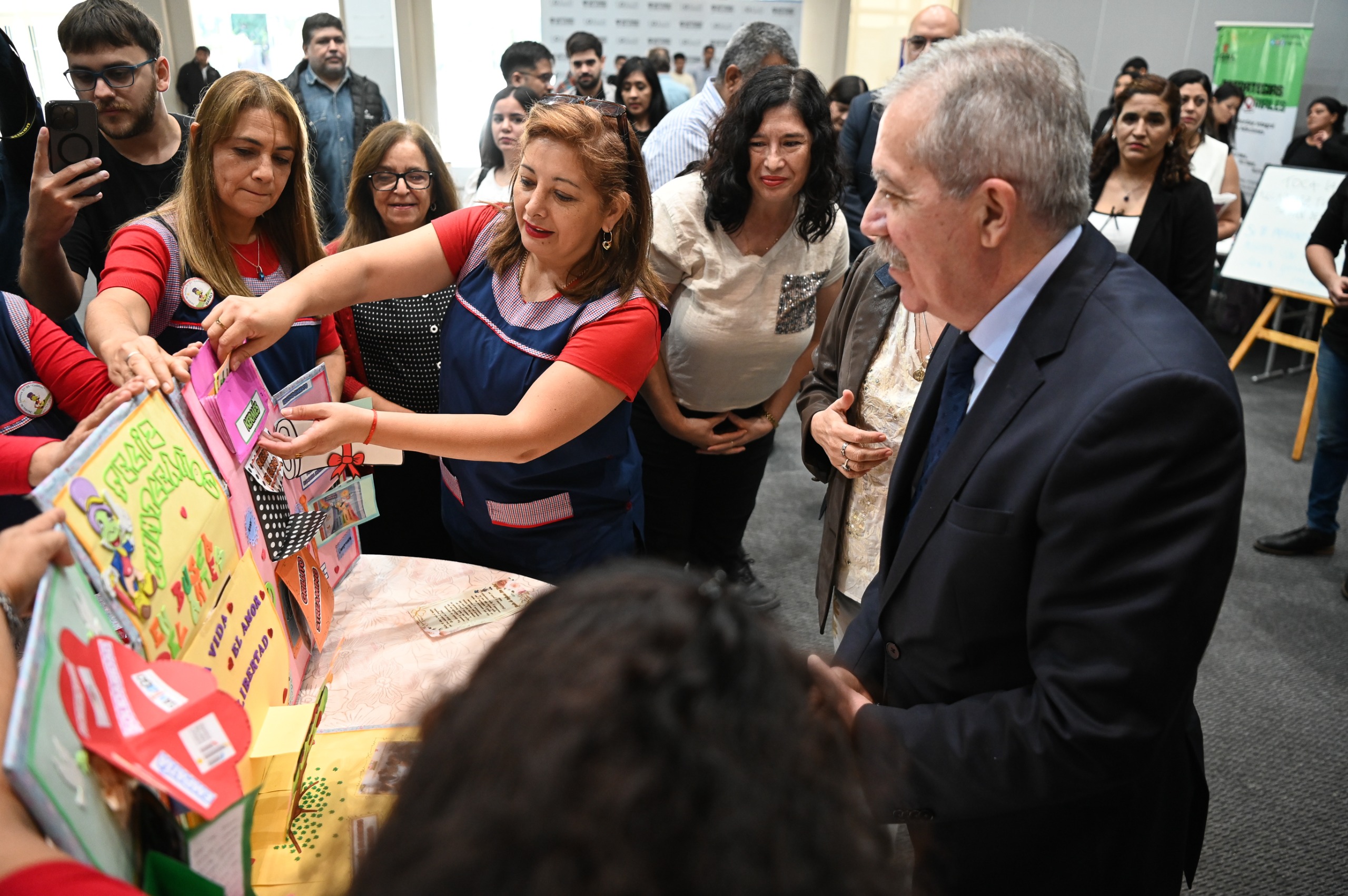 Previo al acto, Suárez recorrió los stands preparados por docentes y alumnos, donde saludó a los participantes y pudo interiorizarse sobre las experiencias presentadas.
