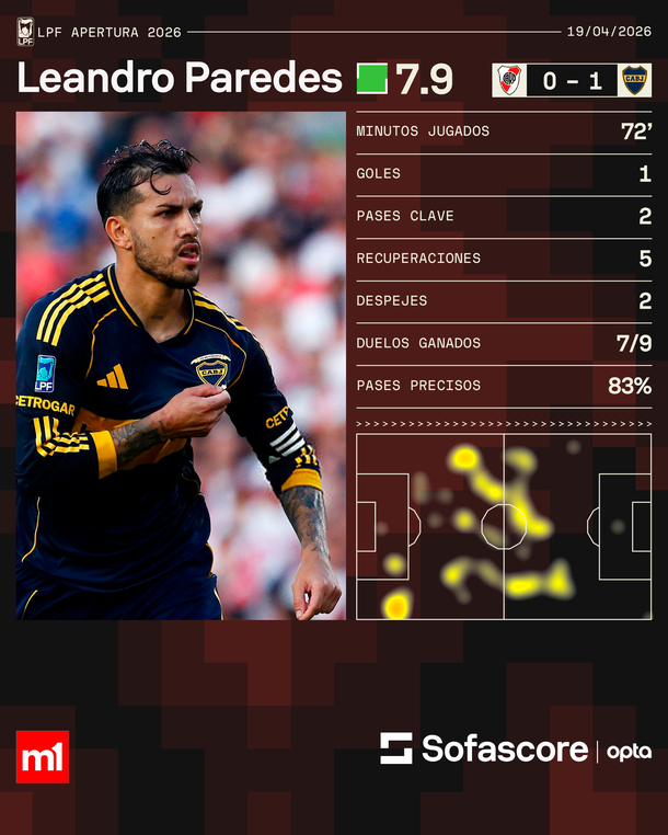 El campeón del mundo marcó el único tanto del «Xeneize» en el Monumental. Hubo una polémica sobre el final, por un posible penal que reclamó el «Millonario».